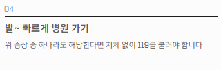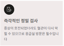 - 발~ 빠르게 병원 가기: 위 증상 중 하나라도 해당한다면 지체 없이 119를 불러야 합니다.