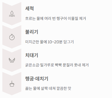 - 헹굼/데치기: 소금기를 깨끗이 헹군 후, 끓는 물에 살짝 데쳐서 사용하면 더욱 깔끔한 맛을 낼 수 있습니다.