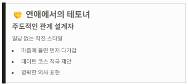 - 직진 스타일: 애매모호한 태도를 가장 싫어합니다. 솔직하고 명확한 피드백을 주고받을 때 관계의 만족도가 높아집니다.